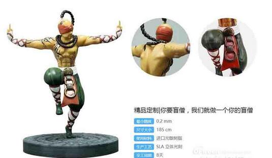使用SLA光固化3D打印技術來制作動漫、游戲、電影角色手板是絕佳的選擇,對于《英雄聯(lián)盟》的忠實玩家,可以擁有一個盲僧的人物角色是十分令人期待的。這是由魔猴網(wǎng)使用SLA光固化3D打印機所打印出的盲僧手板,打印出的白模再配合上色師傅的高超手藝,即可讓它栩栩如生,而且可以根據(jù)用戶的需求來定制化打印。