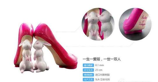 包貝爾婚禮專屬定制的新娘婚鞋則是刷爆了網(wǎng)絡,眾明星紛紛被這雙鞋萌到了并發(fā)布微博,而這雙鞋實際上也是使用SLA 3D打印技術所實現(xiàn), 配合后期上色處理,徹底萌化人心。
