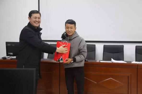 海晏經(jīng)信局羅布加局長(zhǎng)為獲“一等獎(jiǎng)”的優(yōu)秀培訓(xùn)學(xué)員頒獎(jiǎng)