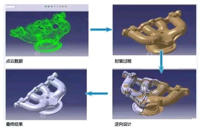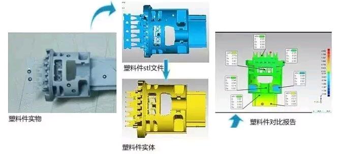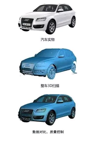 三維掃描系統(tǒng)能在極短時間內,對結構復雜、曲面較多的配件或者難以成型的大型汽車樣件,進行快速掃描,制造出高精細度高的產品。利用三維數據可以對原有數模進行分析檢測,最大限度保證了配件及模具的質量;利用三維數據進行逆向建模,可以提高設計師的工作效率和設計質量,從而保證模具的生產時間。