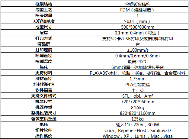 3DDP-500設(shè)備參數(shù)